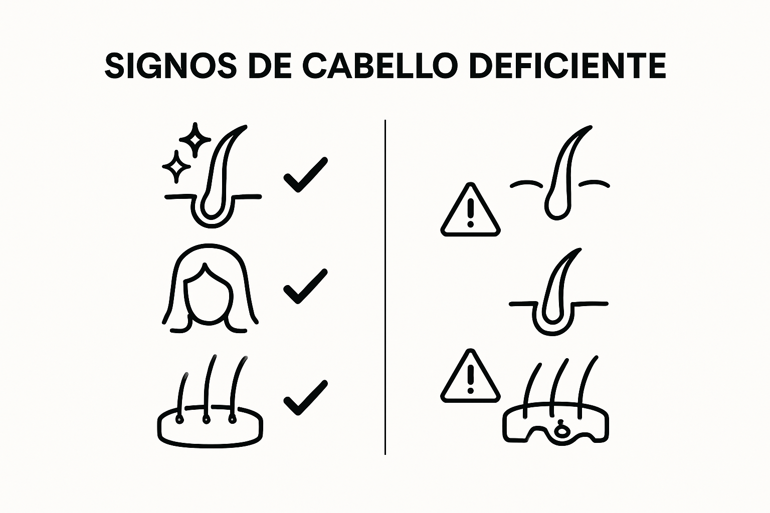 | Señales de Deficiencia | La deficiencia puede manifestarse como cabello débil, quebradizo y con pérdida excesiva; es vital realizar un diagnóstico adecuado. |