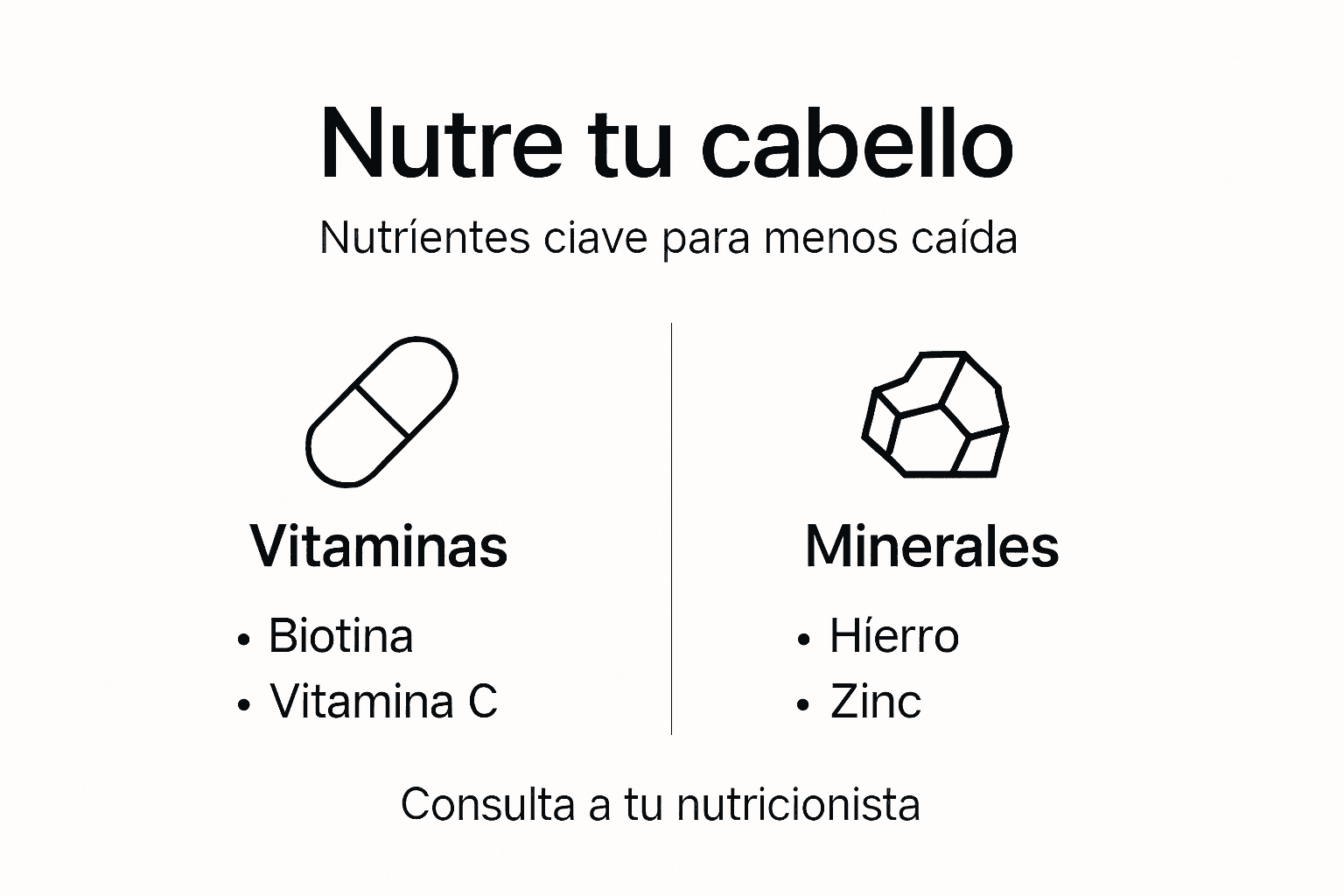 | Nutrientes cruciales fortalecen folículos | Biotina, hierro, zinc y vitaminas A, C, D, E, omega-3 actúan directamente en el ciclo capilar. |