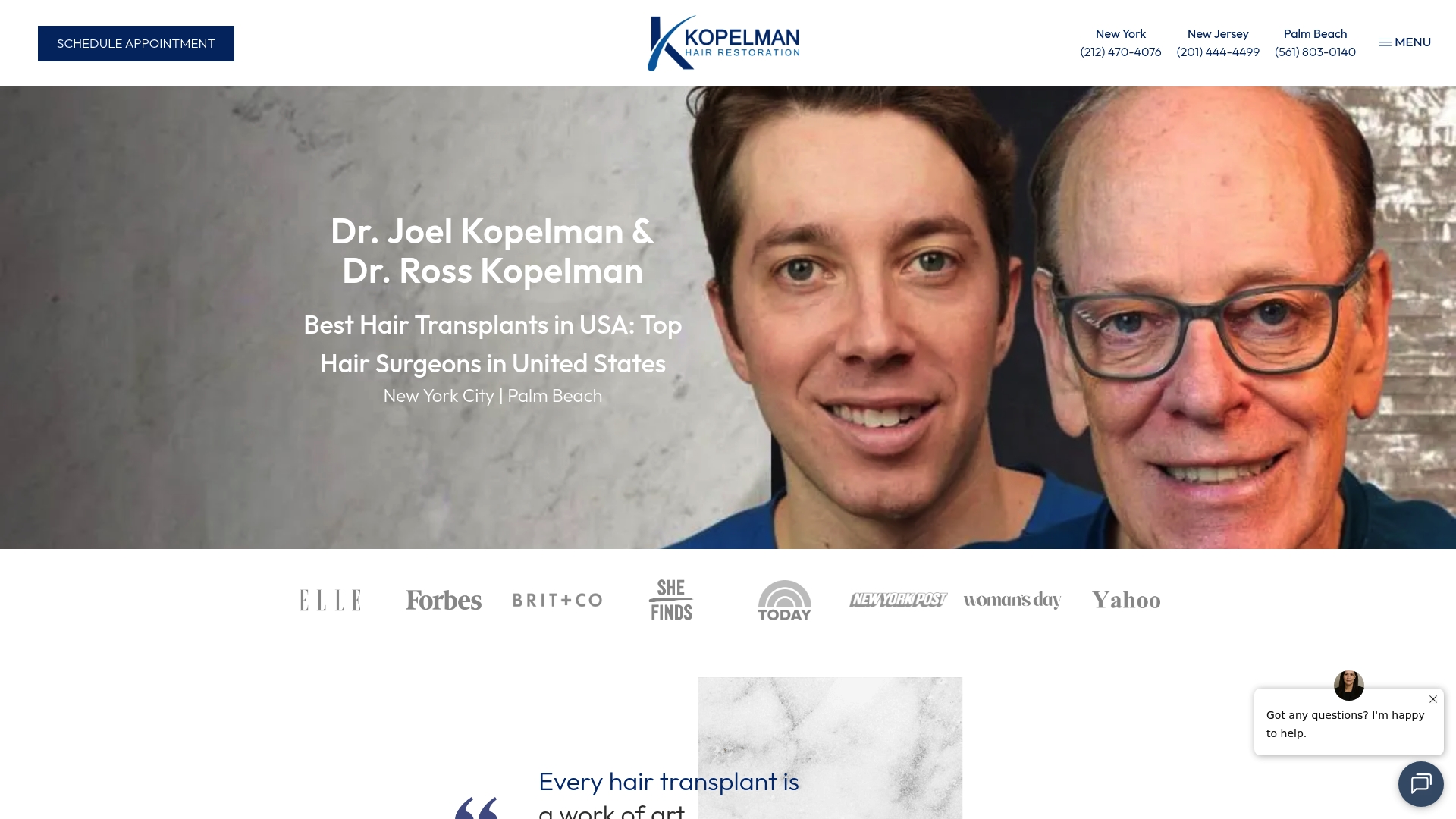 Kopelman Hair Restoration propose des interventions chirurgicales et non chirurgicales axées sur des résultats naturels et une prise en charge personnalisée. Dirigée par Dr. Joel Kopelman et Dr. Ross Kopelman, la clinique mise sur l'expertise et l'esthétique pour restaurer la densité capillaire.