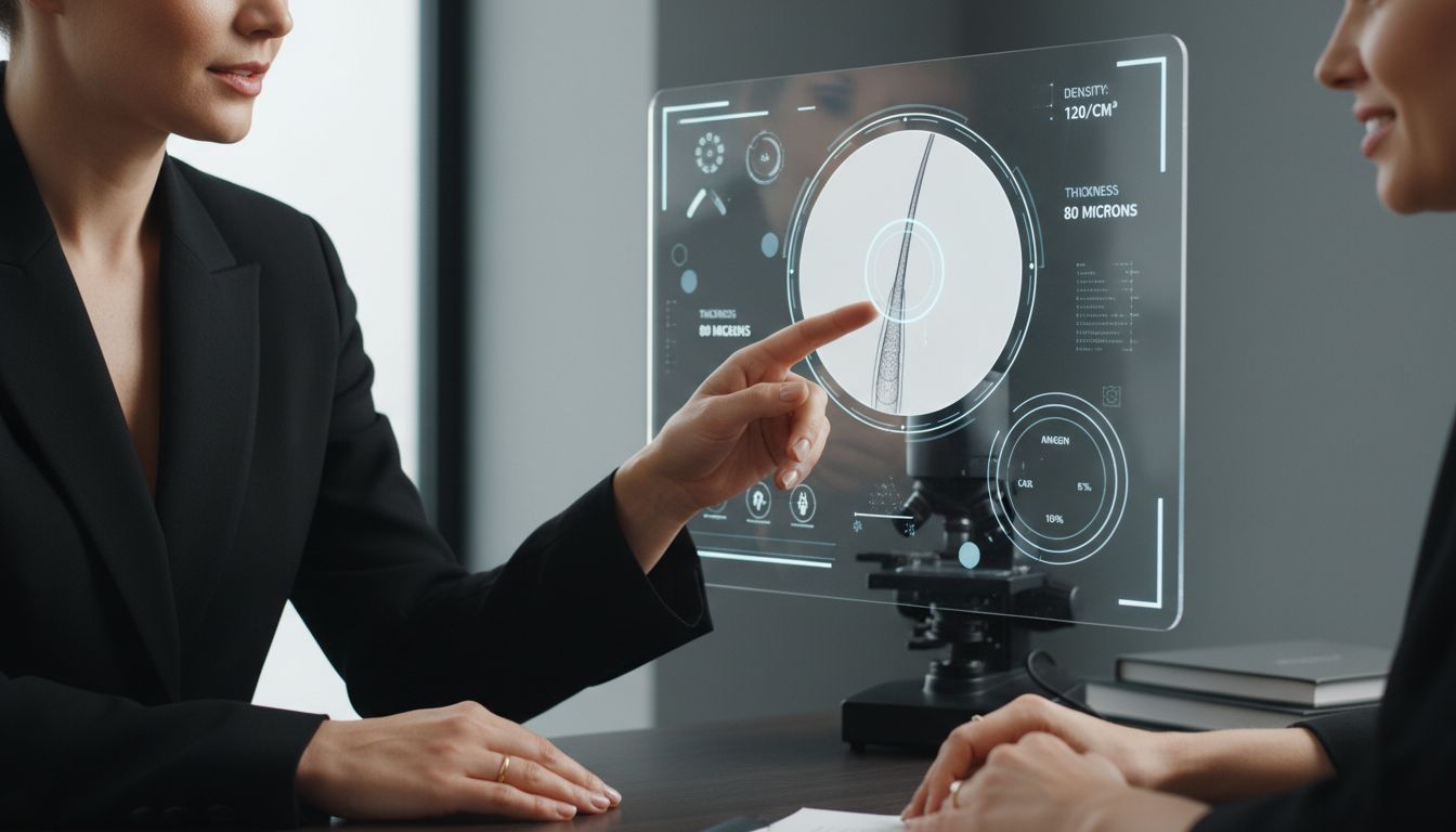 Selon Docteur Bouhanna, la trichoscopie moderne utilise des logiciels de reconnaissance par intelligence artificielle pour analyser finement les images du cuir chevelu. Ces algorithmes sont capables d'identifier avec une précision remarquable :