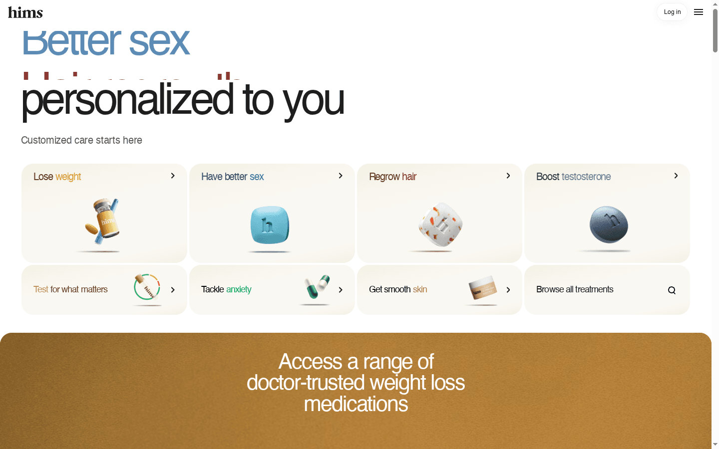 Hims centers on five core capabilities that work together to create a streamlined experience. The platform provides online consultation with licensed healthcare professionals, which lets you discuss symptoms and treatment goals from home. It builds personalized treatment plans based on those consultations and offers prescription medication delivery so you do not need to visit a pharmacy. Hims also maintains a wide range of health and wellness products and markets a discreet and convenient service model focused on privacy and delivery.