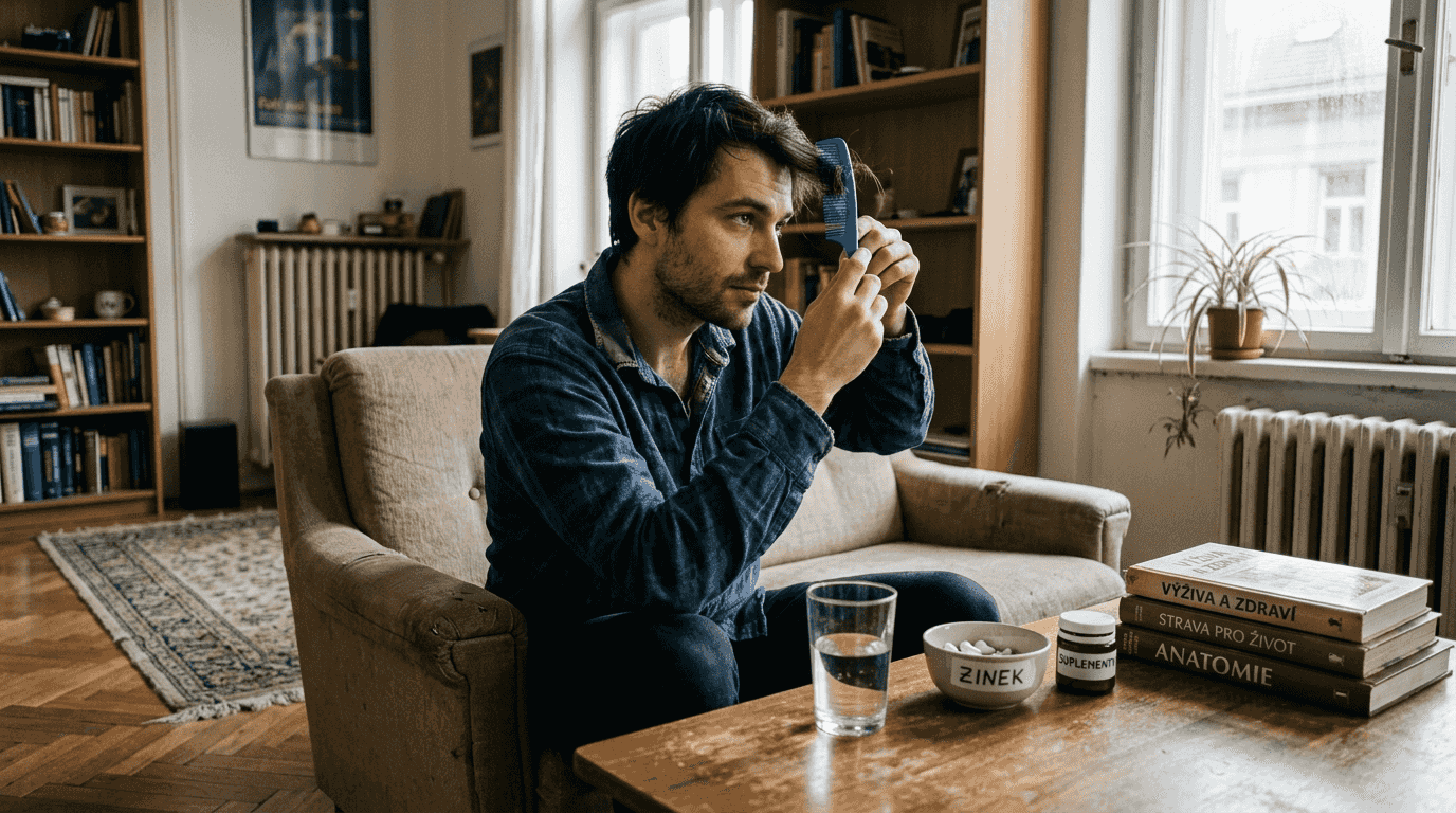 - Nízký zinek: Doplňte 30 mg elementárního zinku denně s jídlem, přidejte dýňová semínka a ústřice do stravy