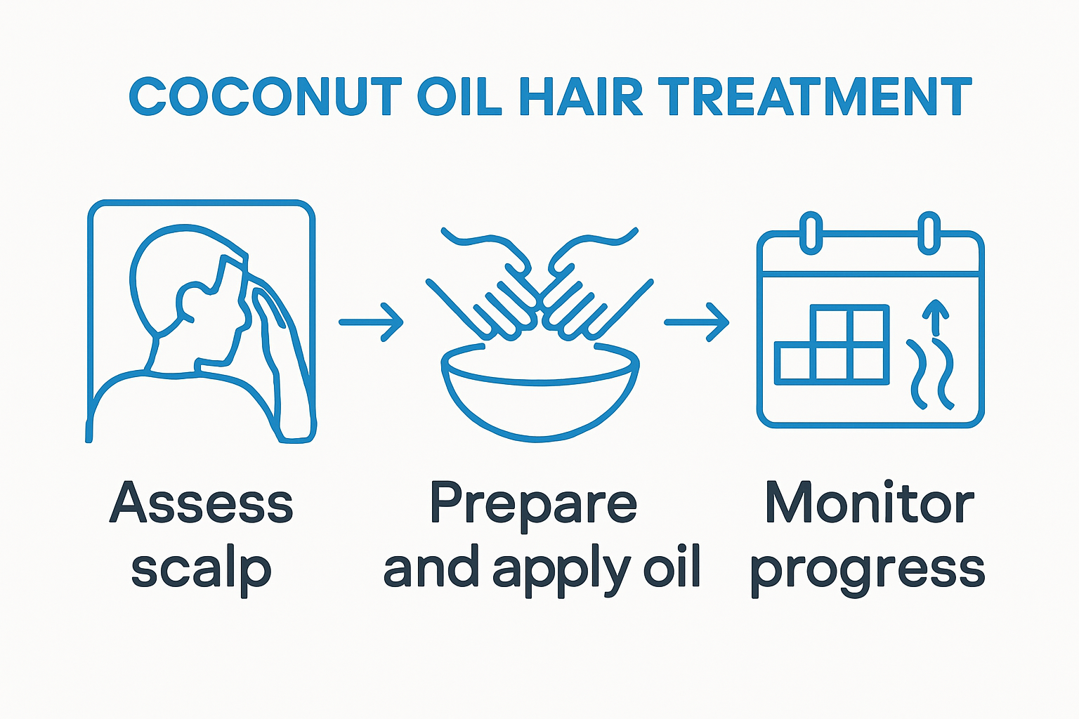 Below is an overview of the main steps in the coconut oil hair loss treatment process, along with estimated time and key outcomes for each stage.