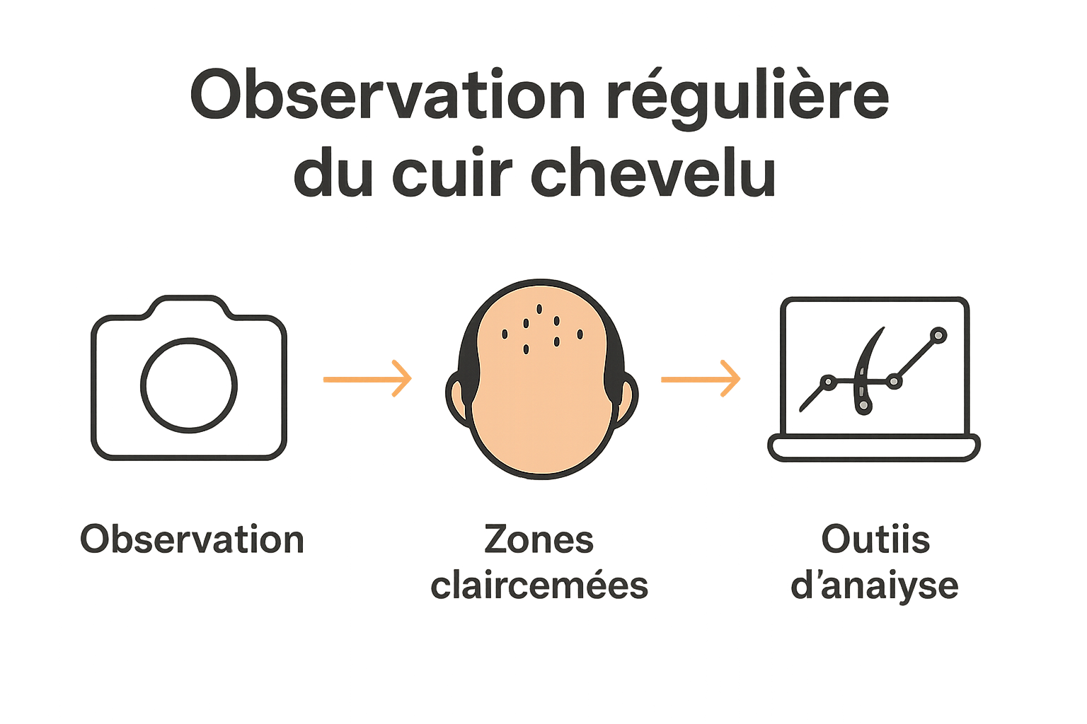 | 1. Observez régulièrement votre cuir chevelu | Prenez des photos tous les 15 à 30 jours pour suivre l'évolution de la densité capillaire. |