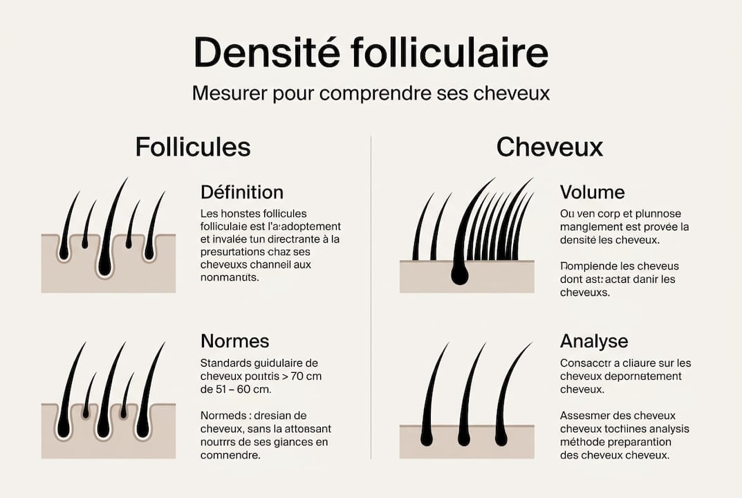 | Définir la densité folliculaire | C’est le nombre de follicules par centimètre carré, un repère clé pour évaluer la santé des cheveux. |
