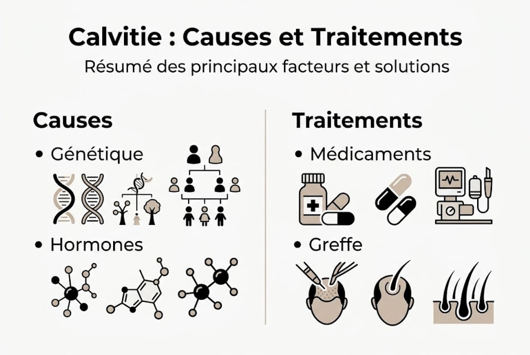 | Traitements éprouvés | Les solutions efficaces incluent minoxidil, finastéride et greffe, à adapter selon son profil. |