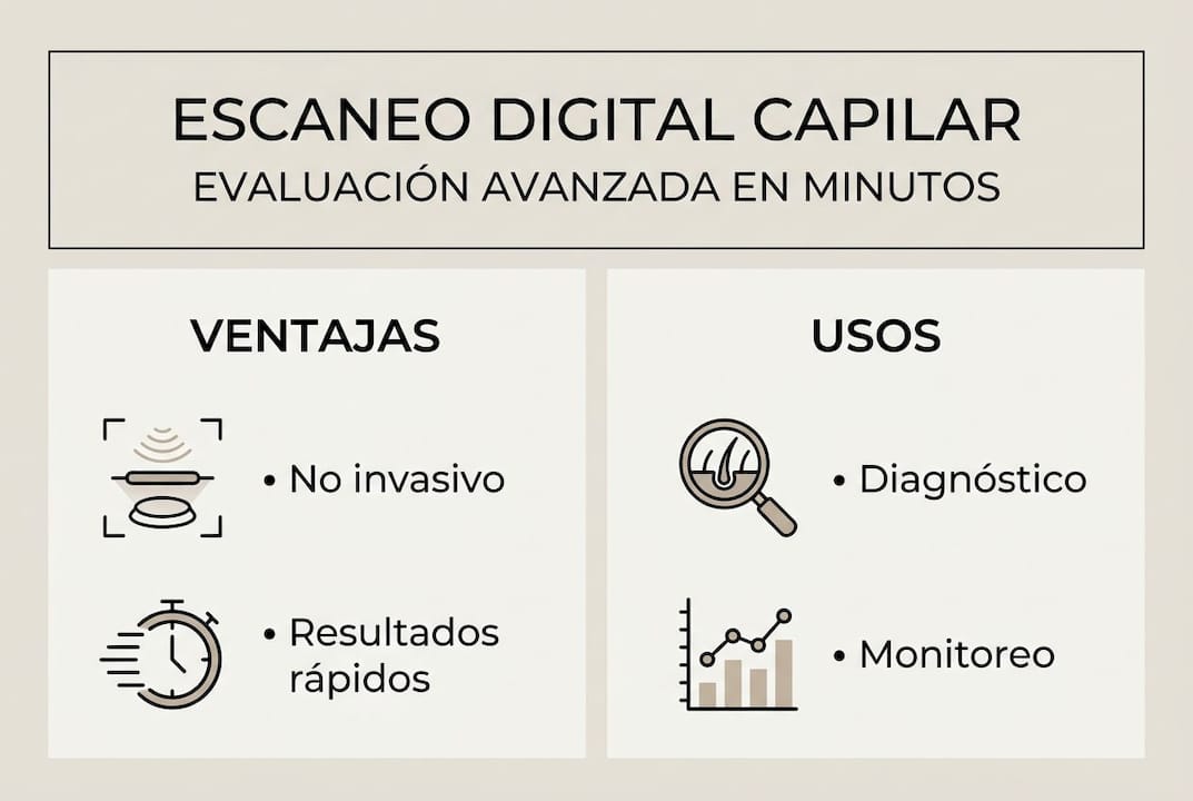 | Diferenciación profunda | El método digital ayuda a distinguir entre tipos de pérdida de cabello y a prevenir errores en el tratamiento. |