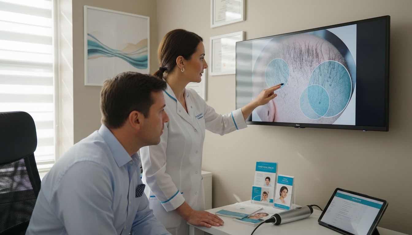 - Scalp micropigmentation: Creates visual density through specialized tattooing techniques