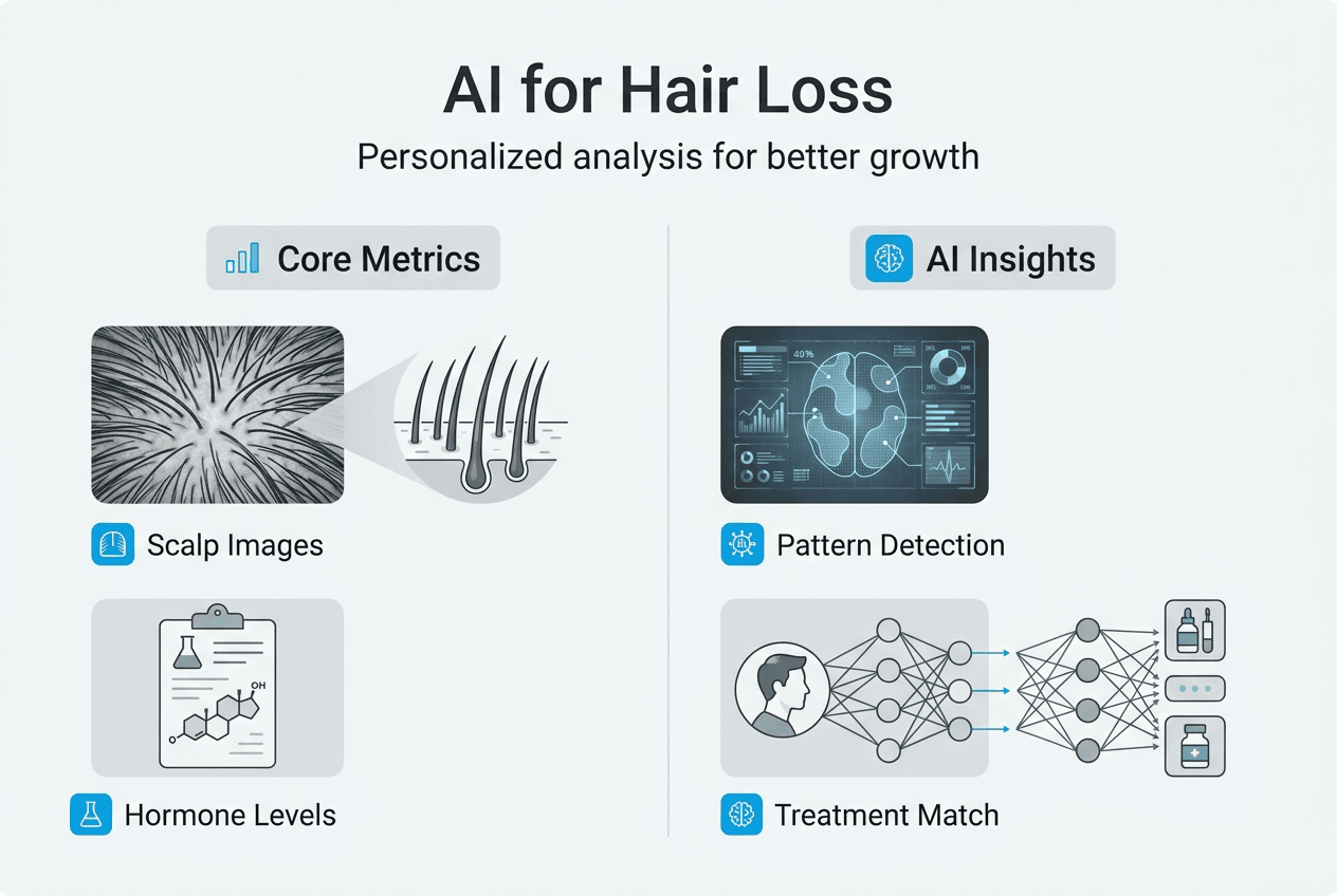 AI doesn't just measure hair. It integrates hormonal data when available, cross-referencing symptoms like scalp oiliness, inflammation, or sudden shedding with likely endocrine causes. If you report fatigue and weight gain alongside hair loss, the system might suggest thyroid evaluation. This holistic approach catches issues that isolated assessments miss.