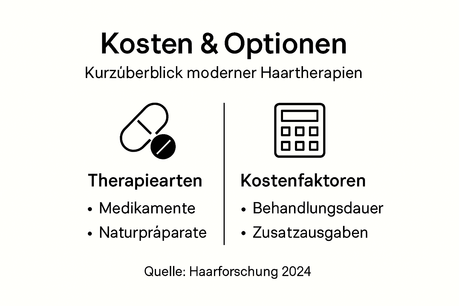 Die folgende Tabelle bietet einen direkten Vergleich der wichtigsten aktuellen Behandlungsmöglichkeiten bei Haarausfall: