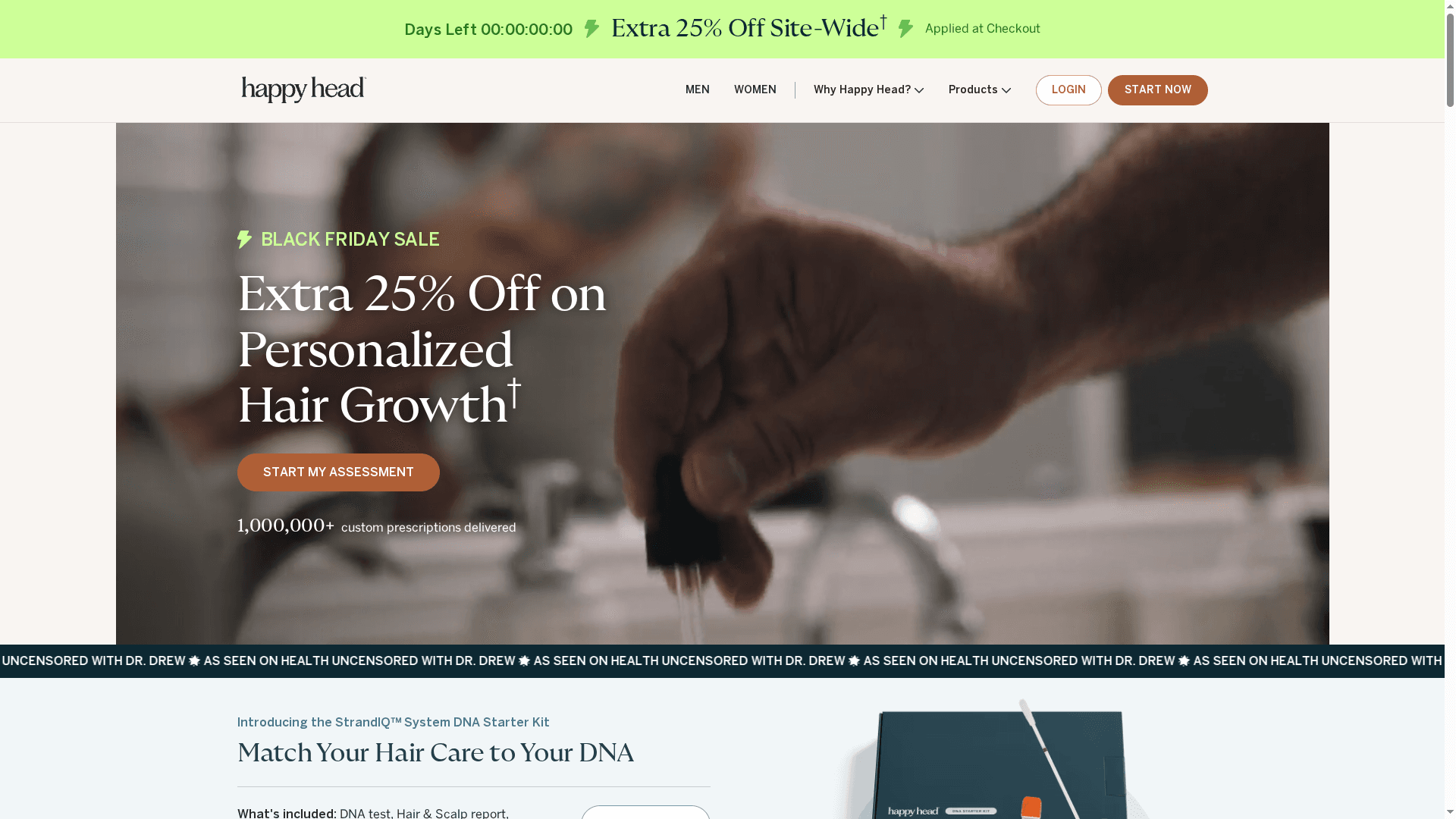 Happy Head propose des protocoles de repousse capillaire personnalisés fondés sur des tests génétiques et des formules développées par des dermatologues, Dr. Ben et Dr. Sean Behnam. Le service combine solutions topiques, médicaments oraux et thérapie par laser sans nécessiter de visite en cabinet. C'est une option pratique pour qui cherche une approche scientifique et sur-mesure, mais attendez-vous à un engagement continu et à des informations tarifaires peu détaillées en ligne.