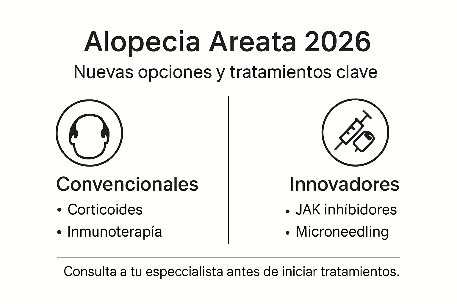 El panorama de tratamientos para la alopecia areata ha experimentado avances significativos en los últimos años. Nuevas terapias con inhibidores de Janus Quinasa representan un salto cualitativo en el manejo de esta condición autoinmune.