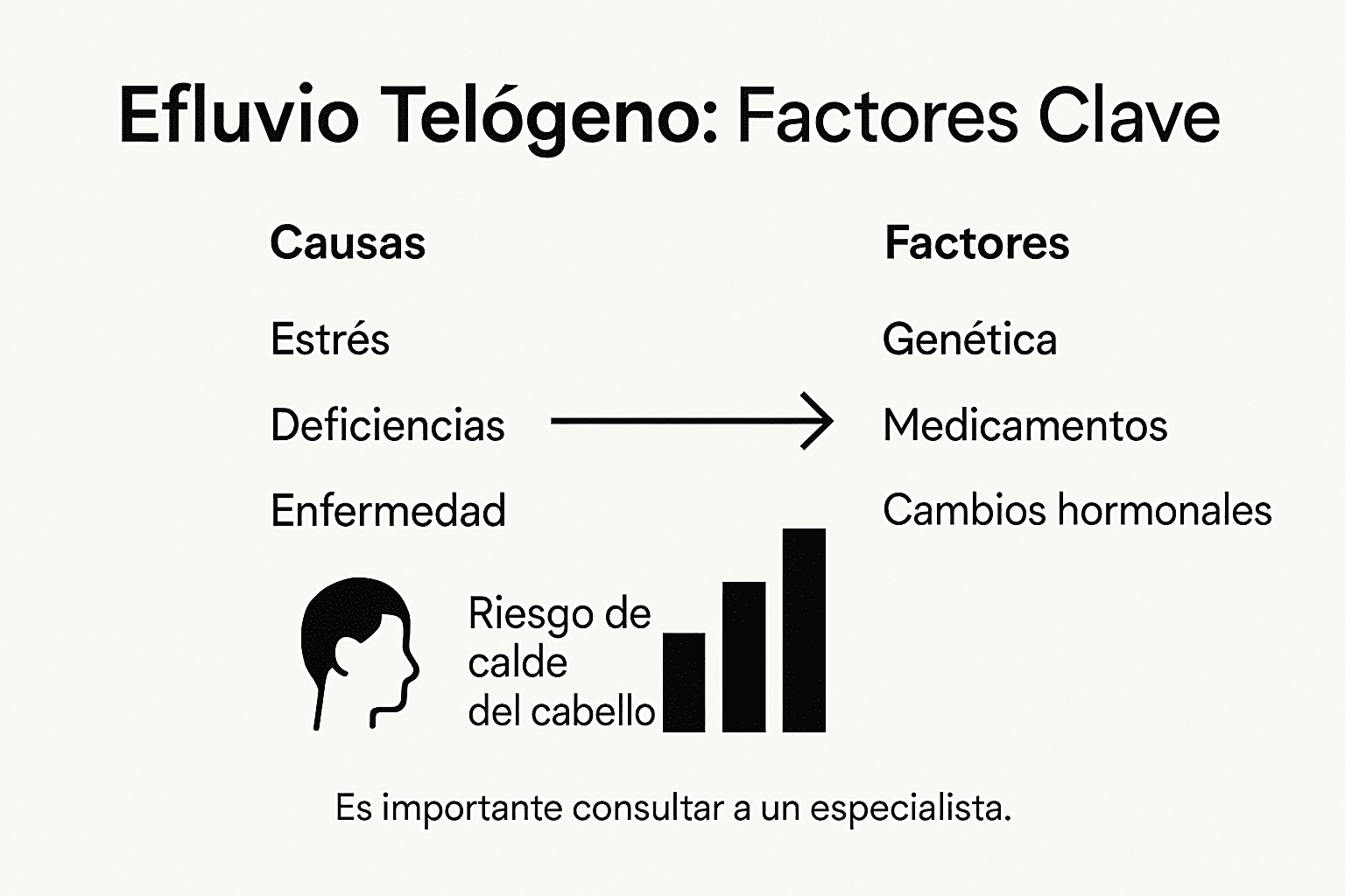 Según investigaciones médicas, el efluvio telógeno puede desencadenarse por múltiples causas que afectan el ciclo natural del cabello. Comprender estos factores es fundamental para identificar y prevenir la caída excesiva del cabello.