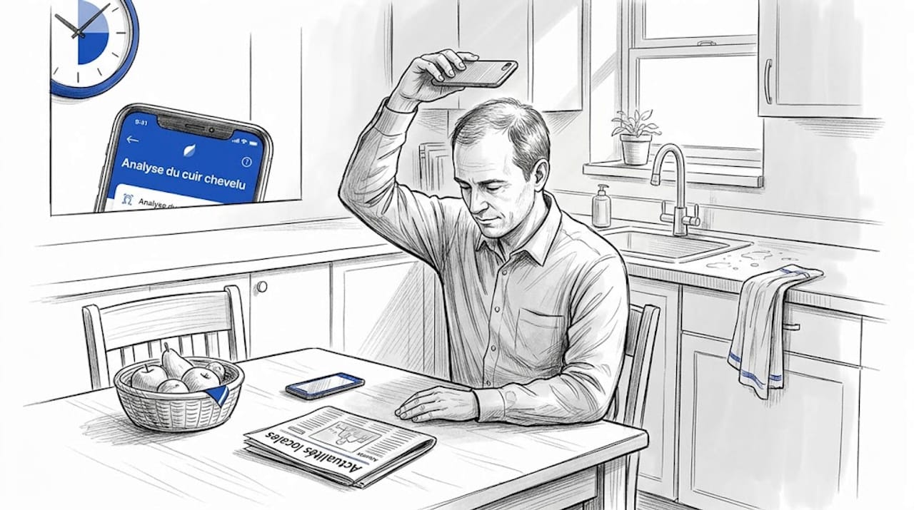 L'intelligence artificielle analyse des données que l'œil humain ne peut pas quantifier facilement : la densité capillaire pixel par pixel, le taux de miniaturisation des follicules (rétrécissement progressif des cheveux avant leur disparition), et l'évolution de ces indicateurs dans le temps. À partir d'une simple photo de votre cuir chevelu prise avec votre téléphone, un algorithme entraîné peut produire un rapport détaillé en quelques minutes.