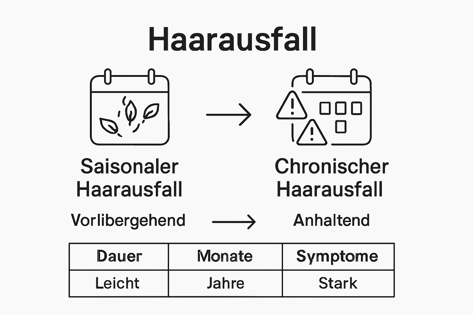 Zu den Warnsignalen für krankhaften Haarausfall gehören großflächige kahle Stellen, plötzlicher starker Haarausfall, Veränderungen der Haarstruktur oder sichtbare Vernarbungen der Kopfhaut. Ursachen können vielfältig sein: Autoimmunerkrankungen, Schilddrüsenprobleme, Nährstoffmängel, Hormonelle Veränderungen oder extreme Stresssituationen. Im Gegensatz zum saisonalen Haarausfall bilden sich die Haare bei krankhaftem Haarausfall oft nicht von selbst zurück.