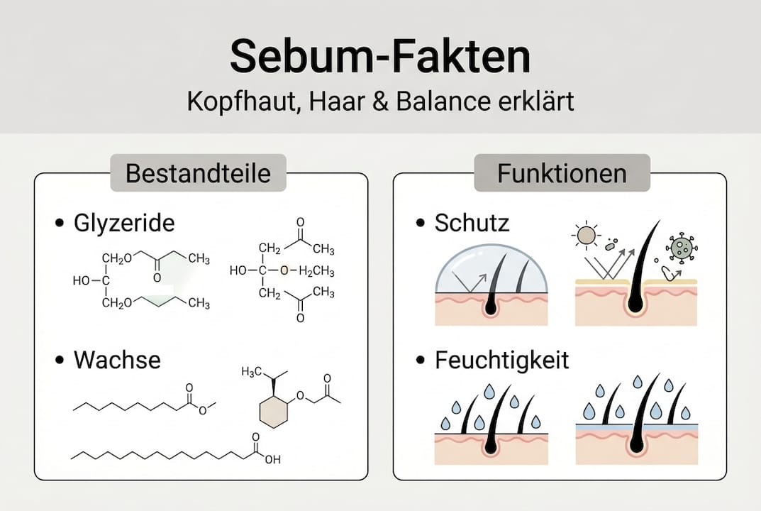 Sebum übernimmt auf der Kopfhaut und am Haar mehrere lebenswichtige Aufgaben gleichzeitig. Es ist kein Nebenprodukt, das man am liebsten loswerden möchte, sondern ein aktives Schutzsystem.