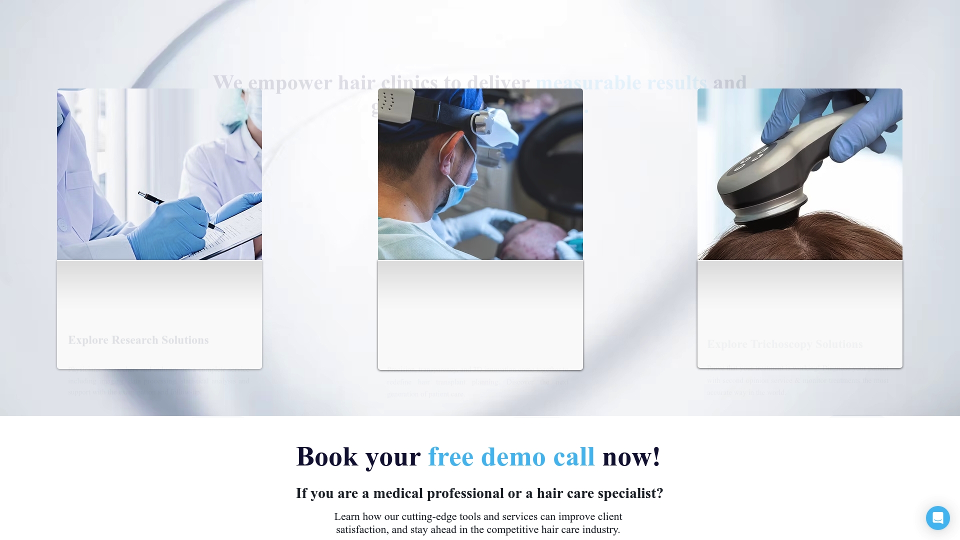 Una clínica aliada utiliza Ihairium para ofrecer diagnóstico remoto por IA, agendar consultas online y activar widgets que recomiendan productos tras la evaluación. El resultado: más pacientes internacionales, mejor preparación antes de visitas presenciales y mayor conversión en la tienda online.