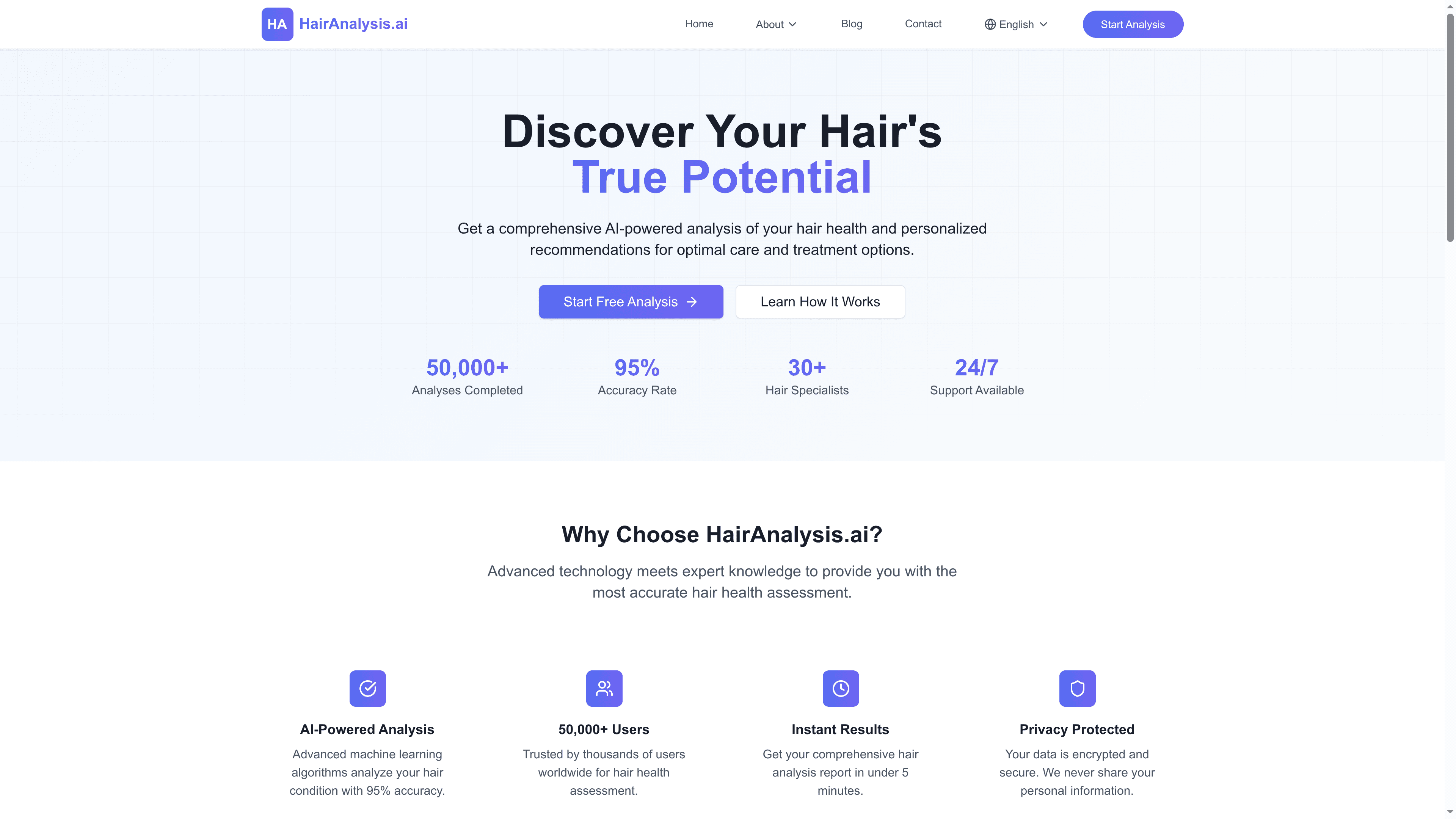 La valeur distinctive de HairAnalysis.ai réside dans la combinaison d’une IA à haute précision (95%), d’un rendu ultra-rapide (moins de 5 minutes) et d’un parcours utilisateur minimaliste en trois étapes, le tout accessible gratuitement sans carte de crédit.