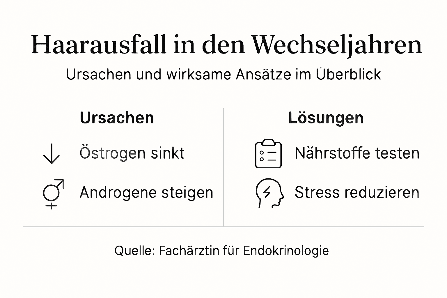 | Hormonersatz | Östrogenzufuhr | Stabilisiert Haarzyklus | Ärztliche Kontrolle nötig |